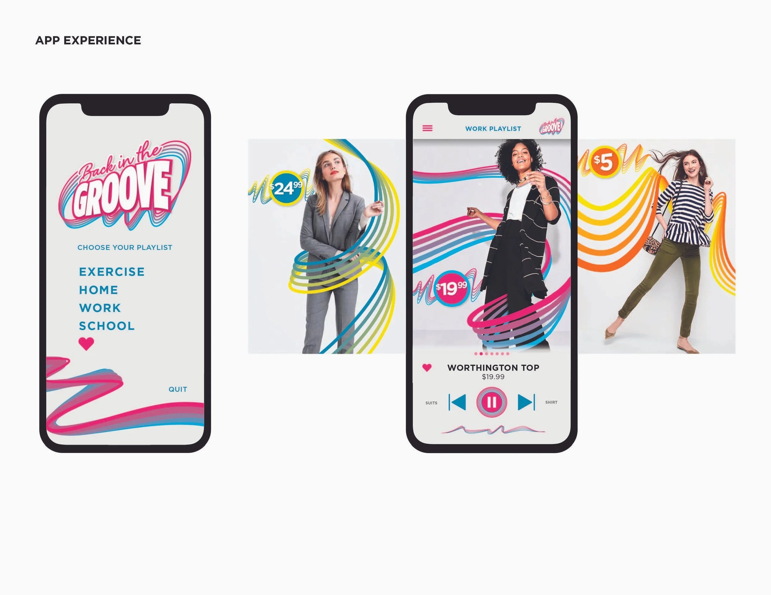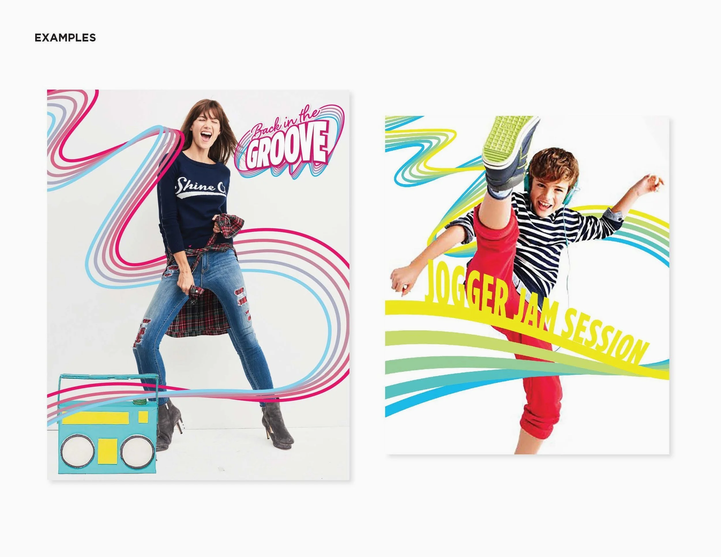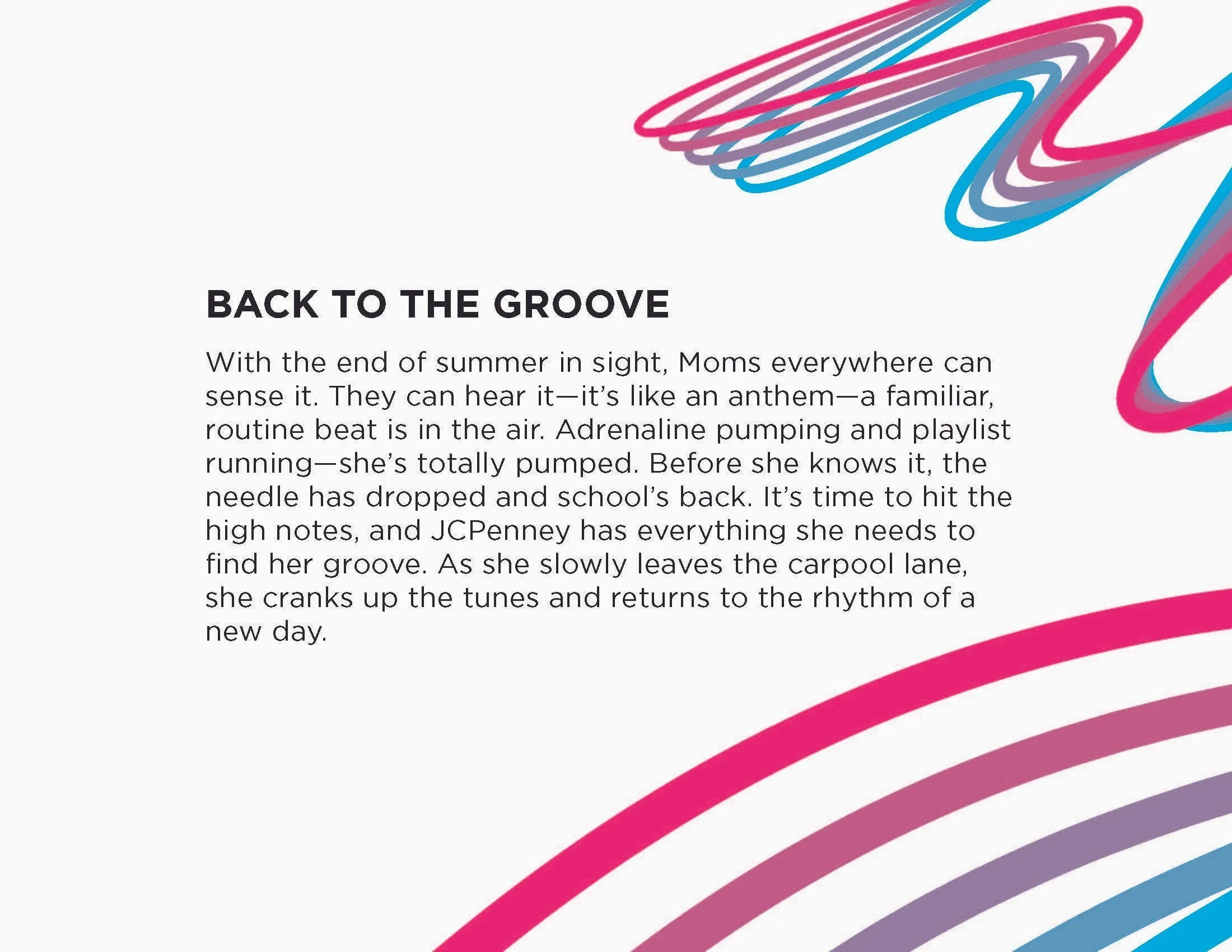 I concepted two seasonal campaigns for JCPenney, exploring how each idea could show up across social, digital, and in-store. Back in the Groove played off the double meaning of “groove”—as in music and getting back into routine. We built the campaign around rhythm and movement, using colorful wave graphics inspired by sound waves to connect the different back-to-school moments.